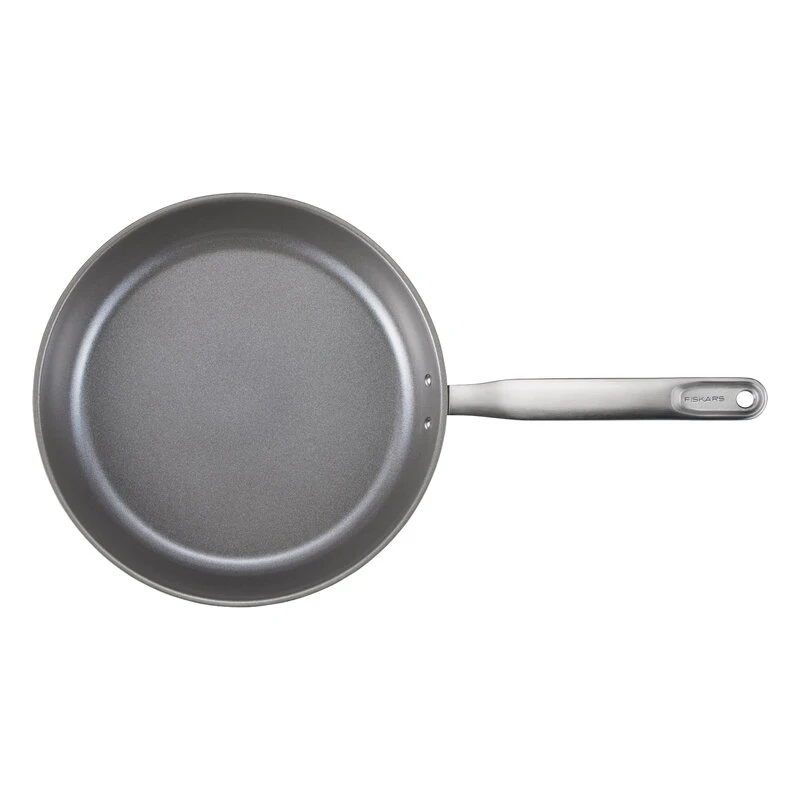 The Fiskars All Steel frying pan is the perfect combination of practicality, durability, and everyday luxury. Made of stainless steel, the high-quality frying pan has a thick three-layer uncoated base and a ceramic Ceratec coating that conducts heat efficiently, guarantees excellent browning and prevents food from sticking to the pans. Like other All Steel cookware, the large frying pan is dishwasher proof, ovenproof up to 270 °C and suitable for all hobs.