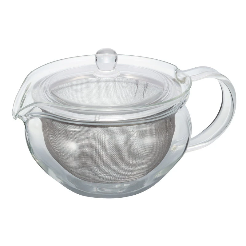 Hario’s ChaCha Kyusu Maru teapot is made of high-quality heatproof glass that enables you to watch the brewing process in action. The elegant teapot is equipped with a large infuser that makes pouring water in and out of the pot easy with no leaves in your tea. The teapot has a capacity of 300 ml, so you can brew 1–2 cups of tea depending on the size of your cups.