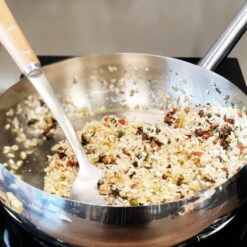 The Belly steel frying pan is suitable for all types of cookers. When frying in a steel pan, it is recommended to use plenty of frying oil, and the pan is, therefore, best suited for cooking steaks, vegetables or chicken. If desired, you can also season the pan before use and as needed. Thanks to the round edges, the Belly pan is also ideal for cooking risottos, for example, and it is also oven-resistant – remember, however, that the steel handle heats up easily.