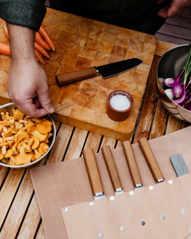 Marttiini’s Cabin Chef chef’s knife is a multi-purpose knife suited for a variety of tasks in the kitchen from slicing meat to chopping vegetables. The kitchen knife comes with an authentic leather sheath that gives the minimalist knife a traditional Nordic look while also protecting the stainless steel blade when the knife is not in use.