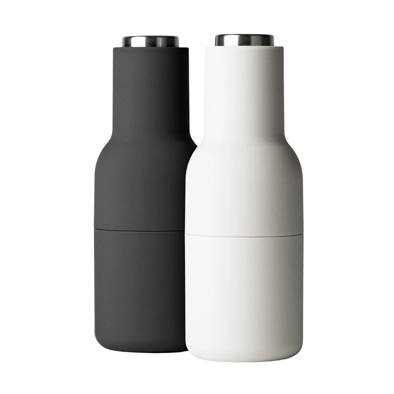 The set includes two Bottle Grinders in different tones, perfected with steel adjustment knobs. The grinders have a silicone coating that is easy to clean and provides a good grip. In 2019, the coating was updated to a new version that makes the grinders even easier to keep clean.