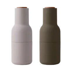 The set includes two Bottle Grinders in different tones, perfected with wooden adjustment knobs. The grinders have a silicone coating that is easy to clean and provides a good grip. In 2019, the coating was updated to a new version that makes the grinders even easier to keep clean.