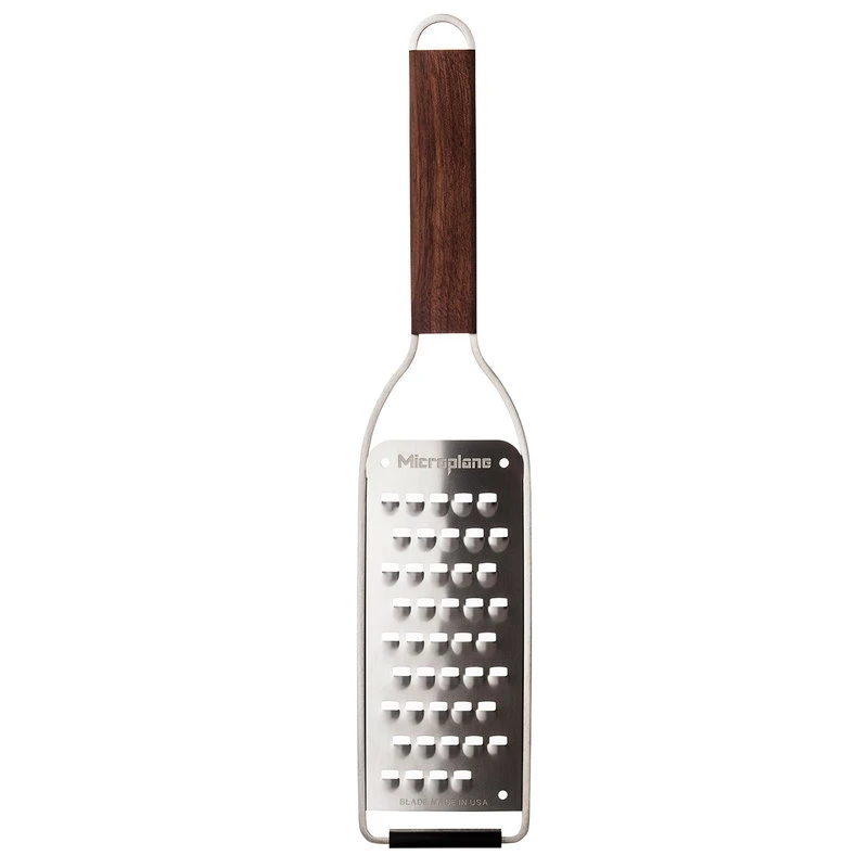 Microplane’s Master Series Extra Coarse grater can be used for cheese, carrot, apple, potato, zucchini, etc. The beautifully crafted handles of the Master Series are made of American walnut, and the non-slip rubber ends give the graters extra stability. In 2017, the Master Series graters won the Red Dot Award.